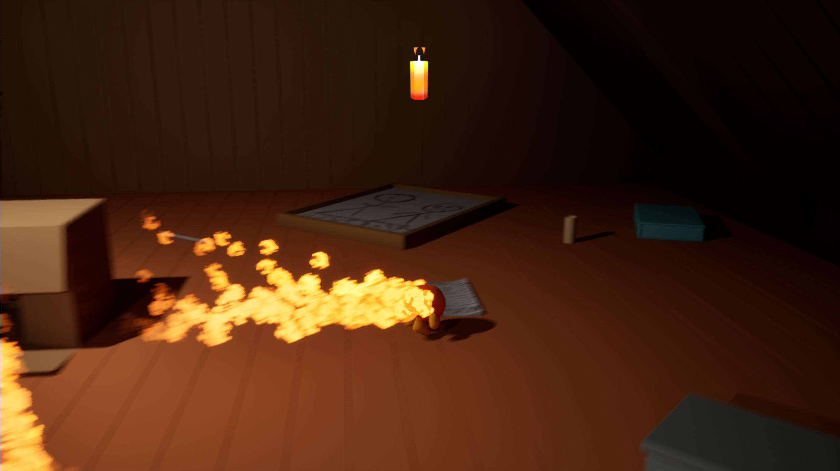 - You have a timer, and you can add time by burning every object in your path.
